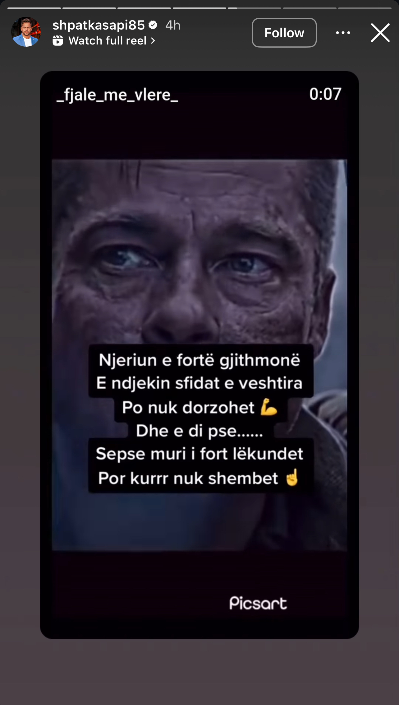 “Njeriun e fortë gjithmonë e ndjekin sfidat e vështira, po nuk dorëzohet. Dhe e di pse… sepse muri i fort lëkundet, por kurrë nuk shembet”